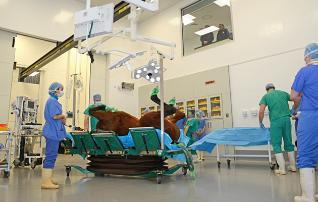 More challenging surgical procedures demand lengthier anaesthetics, which are associated with increased risk for several reasons — not least because a horse is not physically designed to lie on his back for a prolonged period. Remaining in one position under general anaesthesia compresses the muscles upon which he is lying, causing muscle pain, damage and a loss of function when consciousness returns. Similarly, when he is positioned on his back for surgery, the horse’s bulky guts tend to squash his lungs and reduce their ability to inflate and oxygenate blood.
