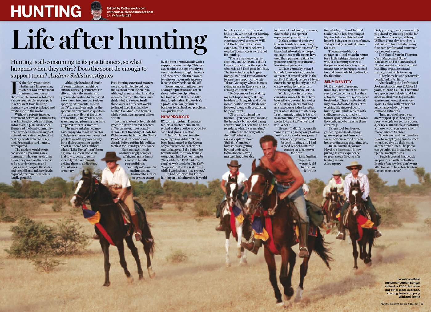 - Life after hunting: The career options – and support – for those coming out of hunt service