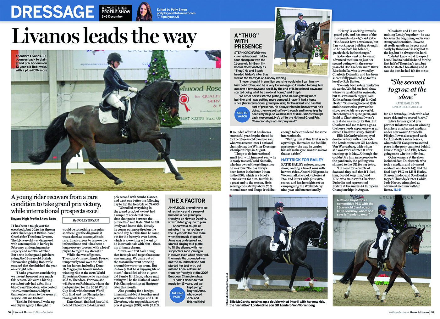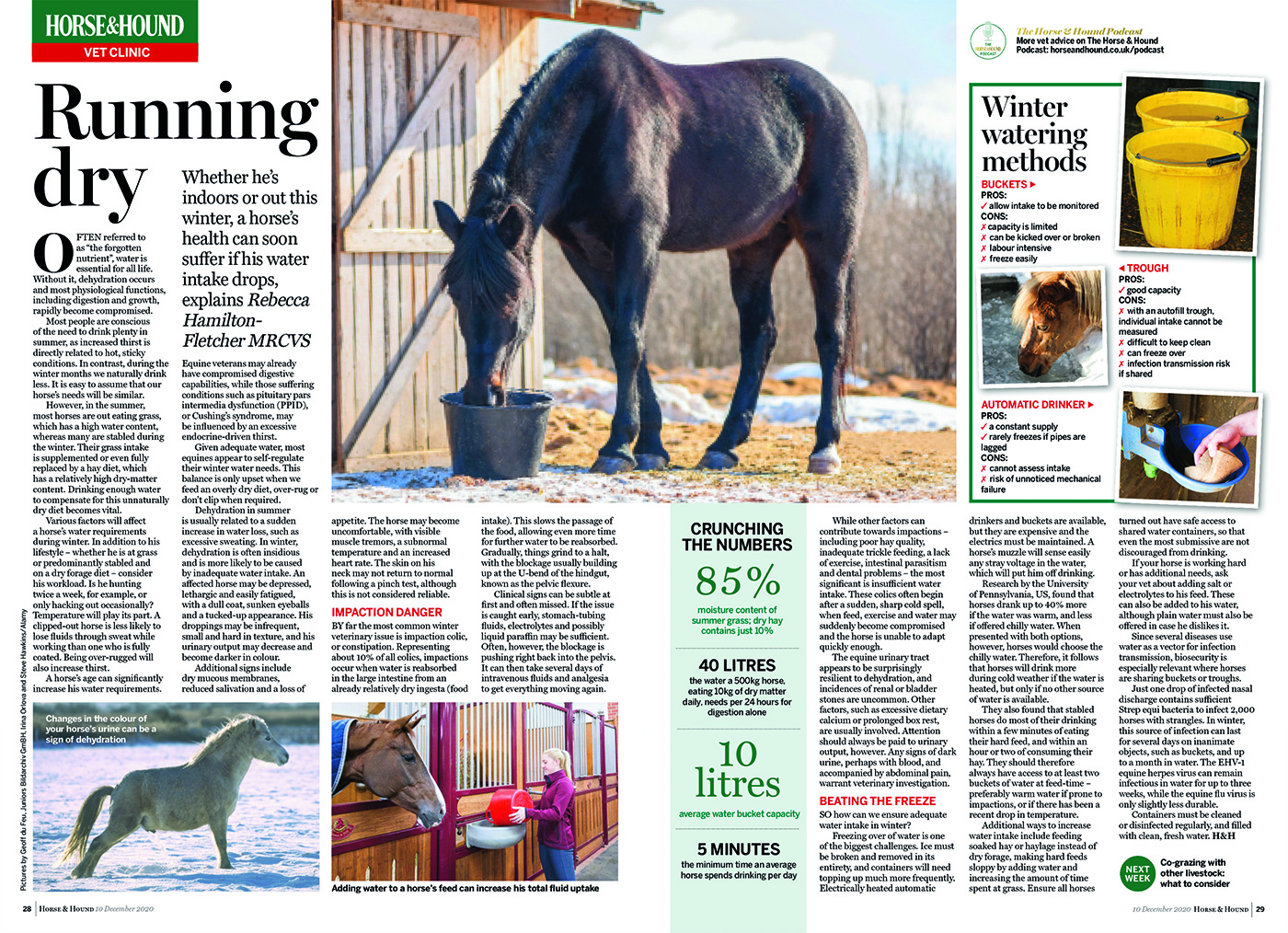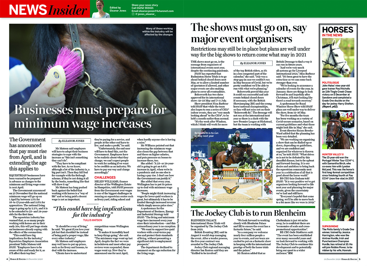 In this week’s Horse & Hound magazine, on sale Thursday, 10 December, don’t missthe announcement of this year’s Horse & Hound Awards, in partnership with NAF. In this week’s “Vet clinic”, we explore what happens if horses don’t drink enough water, plus check out our nostalgic feature on the remarkable horse, who changed the face of dressage, Totilas. We also find out the life lessons of event rider Daisy Berkeley and we focus on the Bicester with Whaddon Chase hunt in our Pack of the week feature. Plus, read reports from the High Profile Show at Keyso, top racing action from Sandown and Aintree and much more.