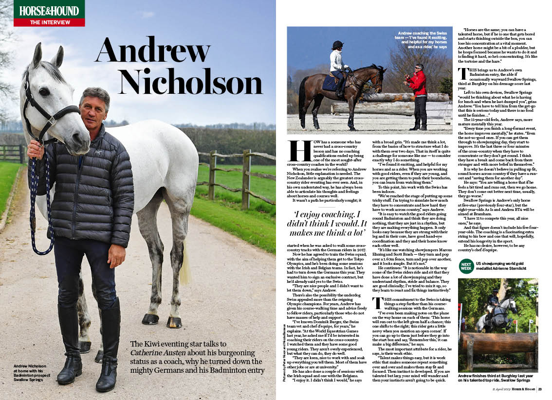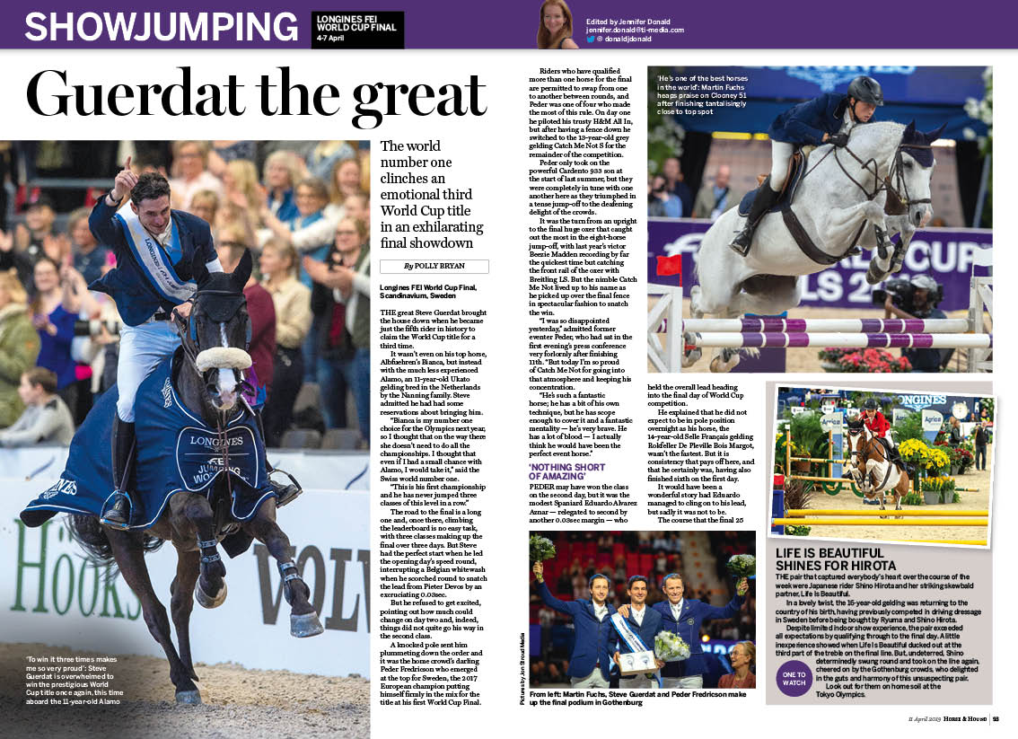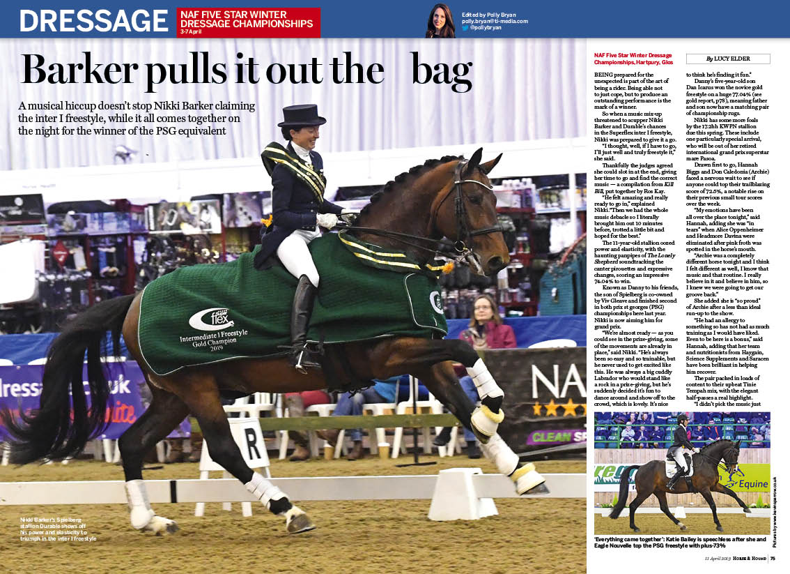 In this week’s Horse & Hound magazine, out on Thursday 11 April 2019, don’t miss part two of our ‘Sport horse breeding special’, we meet legendary dressage stallion, Fidertanz, plus we visit Shane Breen’s Hickstead stud and much more. We also have full analysis, pictures and comment from the Winter Dressage Championships and the Grand National, plus in this week’s ‘H&H interview’ we talk to top New Zealand eventer Andrew Nicholson. In ‘Vet clinic’ we look into vision problems in veteran horses, and read reports from across the disciplines including dressage and showjumping action from the World Cup Final and much more.