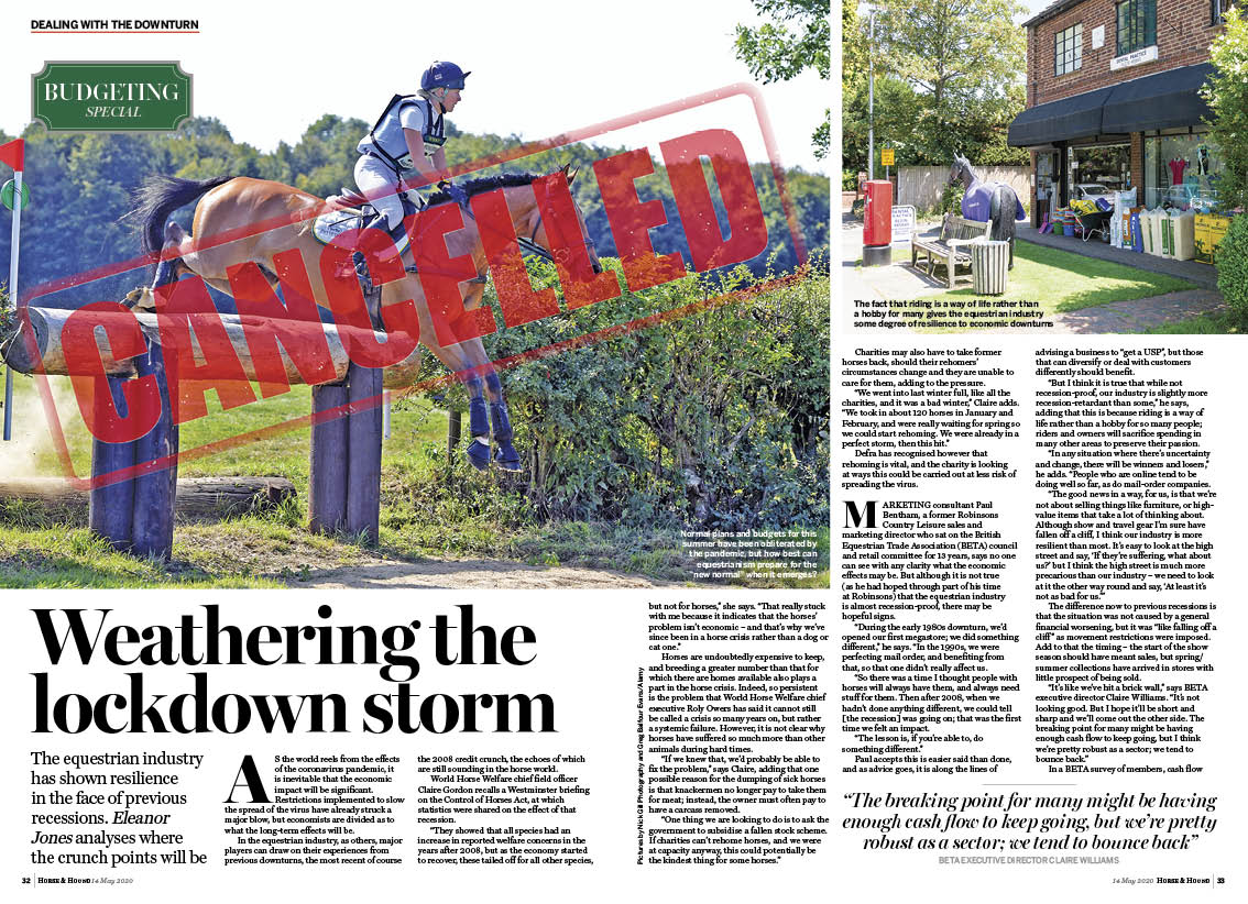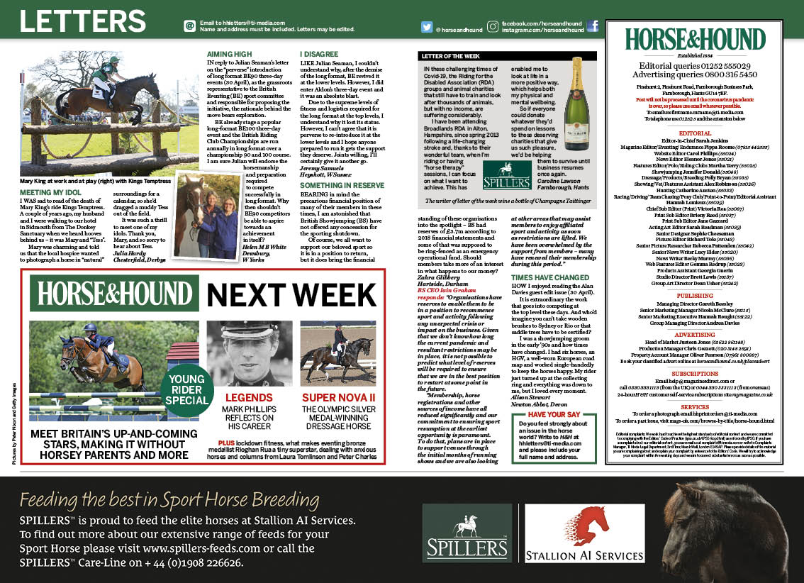 In this week’s Horse & Hound magazine, on sale Thursday, 14 May, don’t miss our ‘Budgeting special’ on dealing with the economic crunch caused by the pandemic, plus check out our ‘Rare breeds special’ in which we explore Britain’s “critical” native breeds, plus five breeds you may not know about and more. In this week’s H&H interview we talk to the new BHS chief executive James Hick and Olympic breeder Kim Barzilay tells us about her daily role. Don’t miss ‘Vet clinic’ about the significance of swellings on horses’ legs and we also have some great rider-focused exercises to keep lockdown boredom at bay. Enjoy our long-read feature ‘Legends of the sport’ on former top eventer Ginny Elliot, one of the first female Olympic medallists in the sport, plus much more.