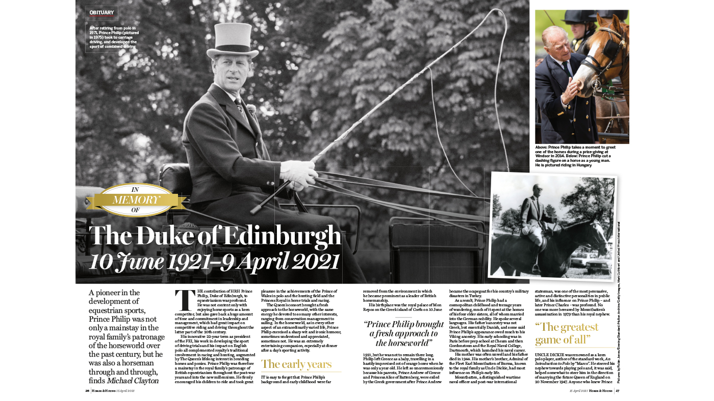 - Prince Philip, the Duke of Edinburgh: A horseman and a pioneer in the development of equestrian sports