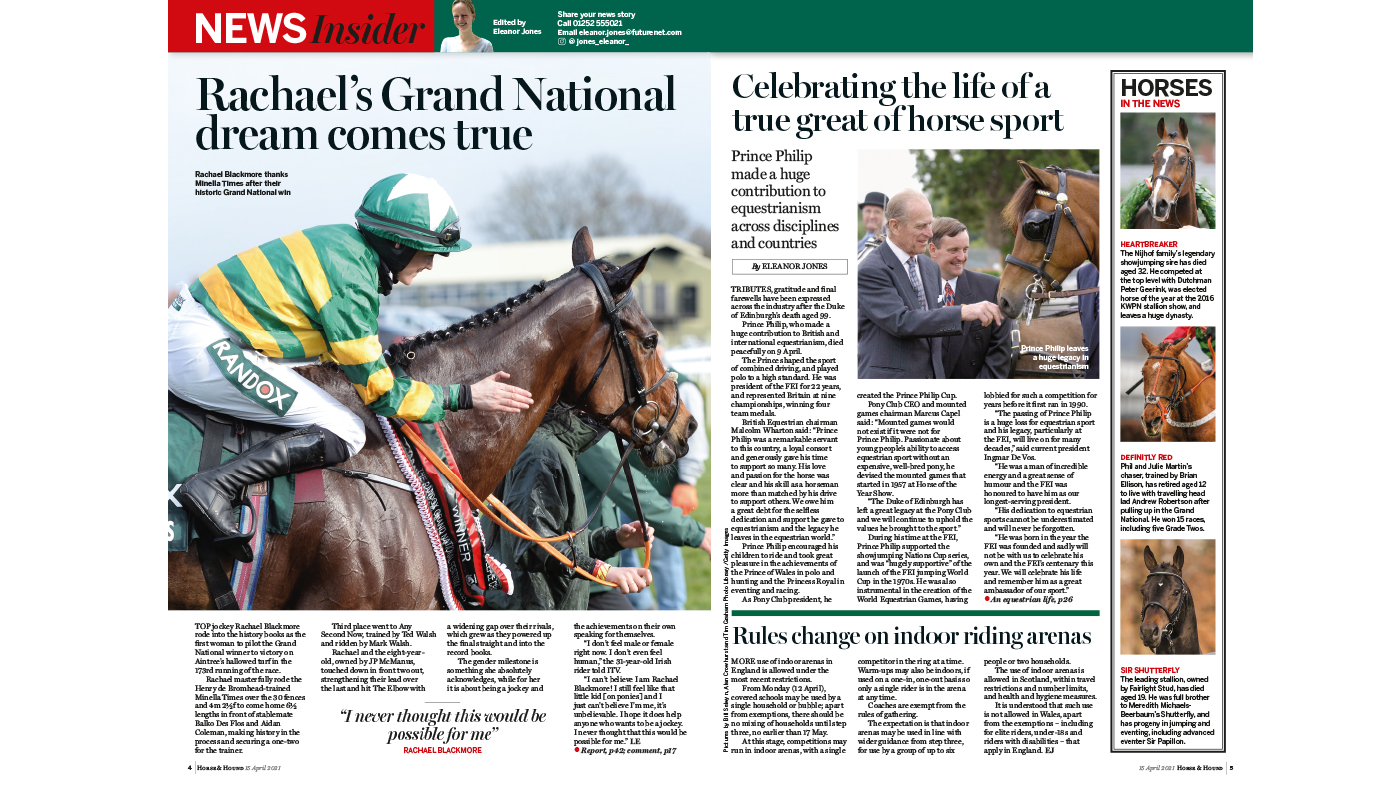 In this week’s Horse & Hound magazine, on sale Thursday, 15 April, we bring you our Olympic launch, which includes an interview with broadcaster Clare Balding, how competing behind closed doors affects riders and more. We also bring you a tribute to Prince Philip, the Duke of Edinburgh and the Grand National report and more. You can also read veterinary advice on ataxia, a preview on Kentucky five-star and much more. We also have reports from eventing, showing, dressage, point-to-pointing and showjumping.