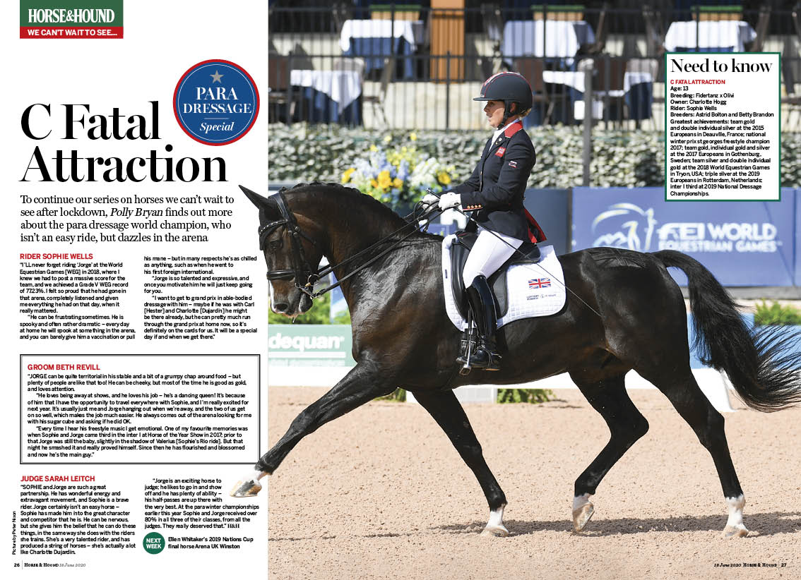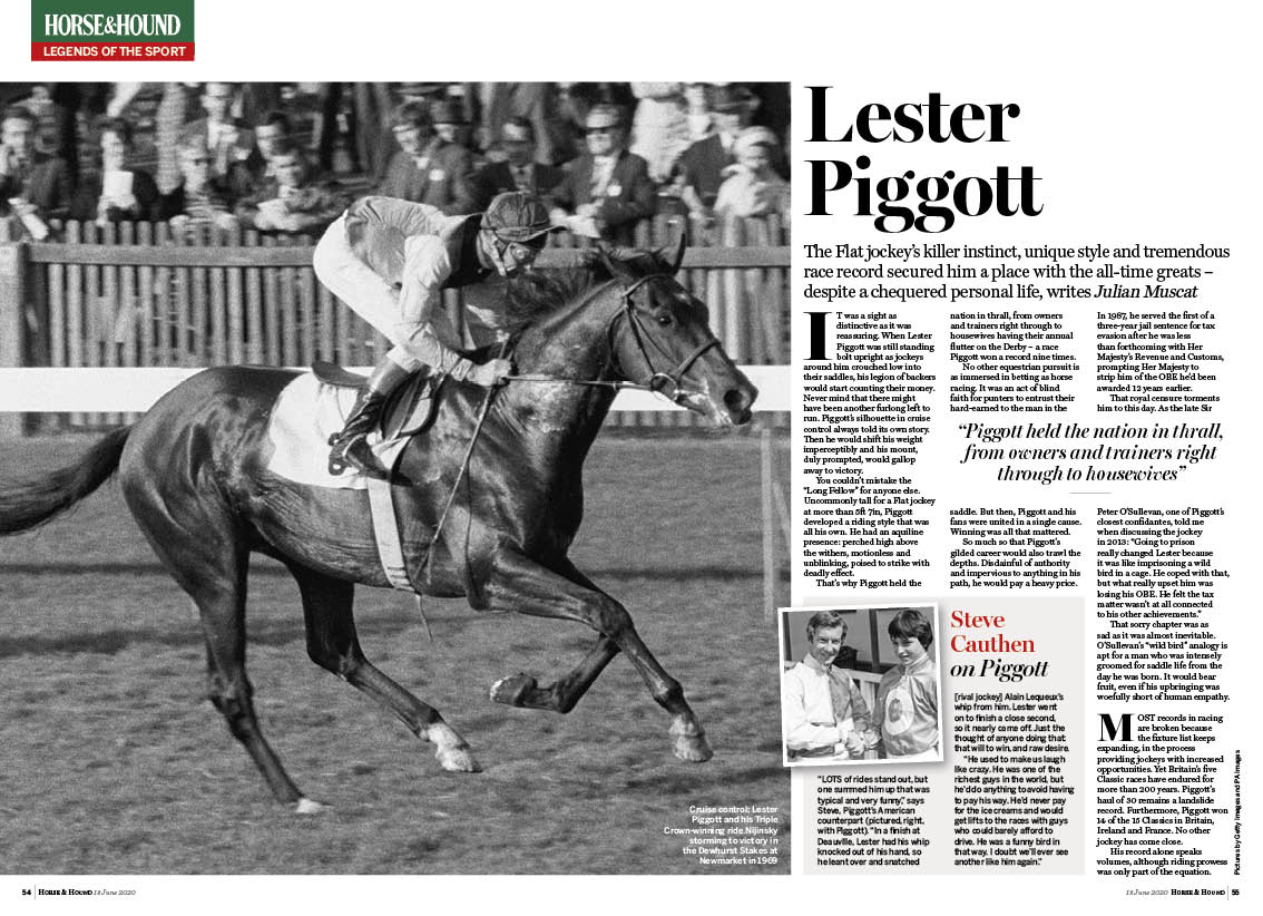 In this week’s Horse & Hound magazine, on sale Thursday, 18 June, don’t miss our “Para dressage special” including the horse we can’t wait to see again, C Fatal Attraction, plus the key ingredients for an elite para horse. Don’t miss our must-read comments from Mary King and Robert Walker and more, and in this week’s “Vet clinic” we find out more on the deadly equine virus being spread by midges in Thailand. We also talk to Australian eventing couple Kevin and Emma McNab and enjoy our nostalgic long-read feature “Legends of the sport” as we look back at the career of all-time great Flat jockey Lester Piggott and much more.