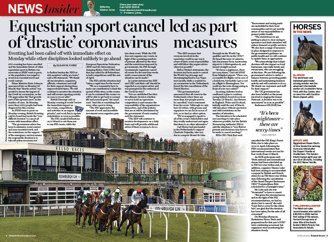 - Coronavirus: horse sport called off as social distancing begins