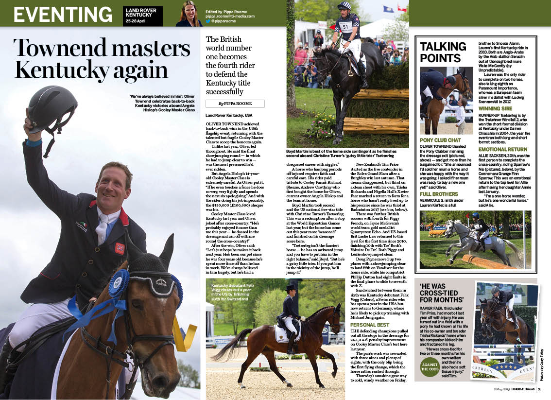 In this week’s Horse & Hound magazine, out on Thursday 2 May 2019, don’t miss our ‘Royal Windsor preview’ including features on the most memorable winners and how the 2019 show is celebrating Queen Victoria’s legacy, plus don’t forget our must-have form guide for all Badminton spectators. In this week’s ‘Vet clinic’ we have all you need to know about ear surgery, and in ‘H&H interview’ we talk to Badminton first-timer and vet Katie Preston. Read reports from across the disciplines including the eventing action from Kentucky, dressage from Keysoe, showjumping from Pony of the Year Show and much more.