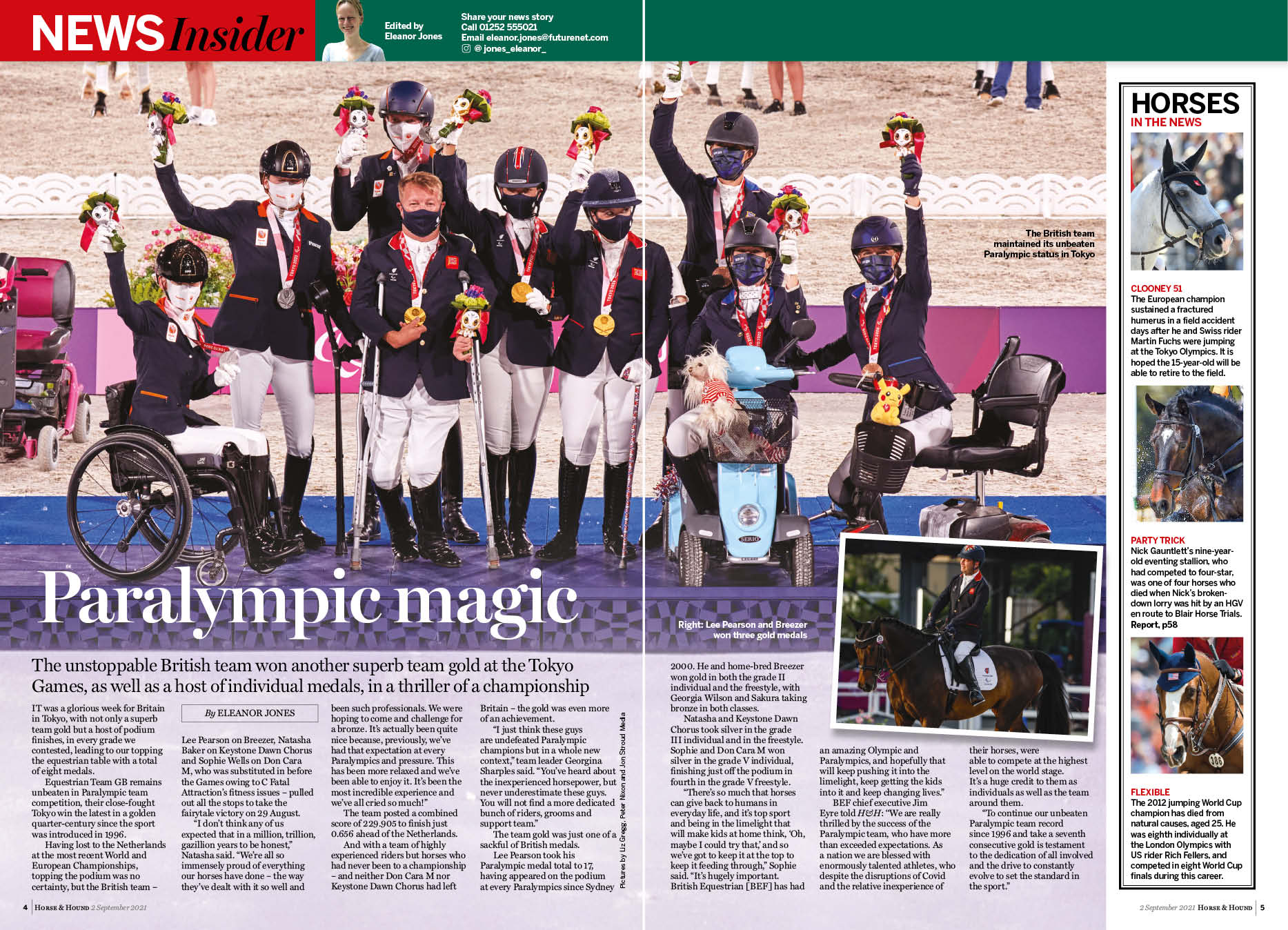 In this week’s Horse & Hound magazine, on sale Thursday 2 September, we bring you the full Paralympic dressage report, including the talking points and how the medals were decided. Plus, you can read an interview with Olympic showjumping champion Ben Maher, our full Bicton CCI5* form guide and much more. Plus, find out more about how dressage horse Ramondeur suffered laminitis at the Tokyo Olympics in our vet pages, and more. Plus, we bring you reports from showjumping, showing, eventing and dressage from around the UK.