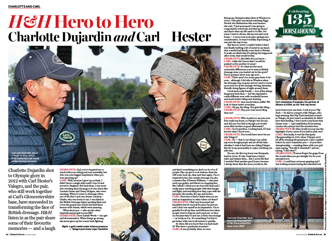 - H&H hero to hero: Piggy French speaks to Mary King; Charlotte Dujardin interviews Carl Hester and Scott Brash talks to Nick Skelton