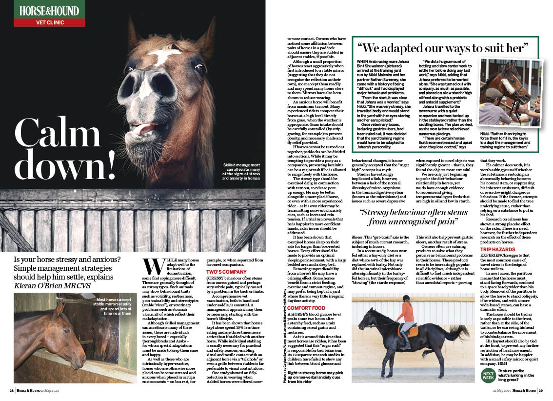- Calming down a stressy horse: Settling an anxious horse, plus easy management strategies to help him