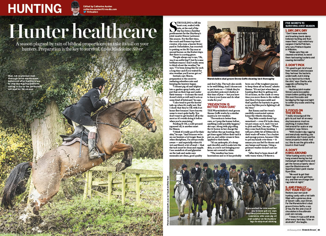 In this week’s Horse & Hound magazine, on sale Thursday, 23 January, we meet Ben Maher’s top ride and our cover star Explosion W, plus champion show rider Robert Oliver reveals his life lessons. In ‘Vet clinic’, we explore how hindlimb problems could affect a horse’s future prospects, and check out our feature on feeding your horse to win. Don’t miss our ‘Bloodstock special’, we visit a small stud making waves in the sales ring and more, plus we go behind the scenes at Hyde Park Stables. Read our hunting content, including how to look after hunters, and we have reports from across the disciplines.