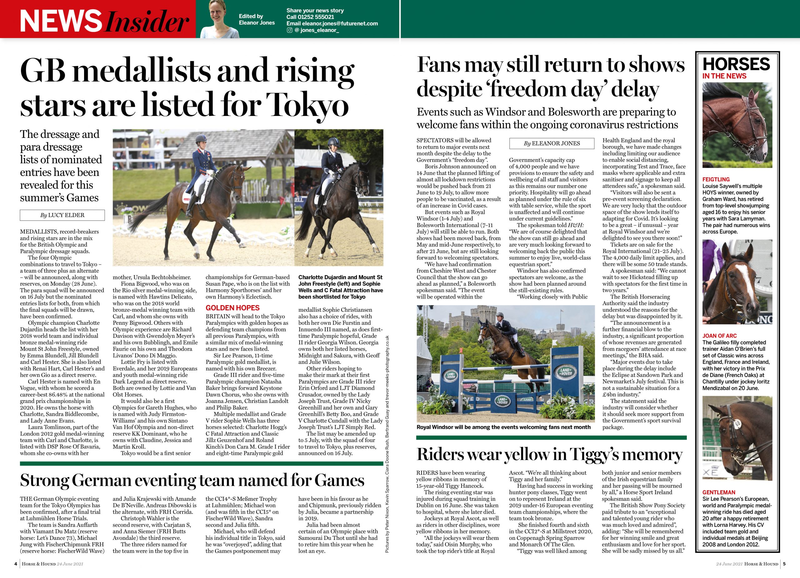 • In this week’s Horse & Hound magazine, on sale Thursday, 24 June, we bring you our Scotland special, which includes a look around this country and all that it has to offer equestrian fans, plus our report from the Royal Highland Show. We also bring you an interview Chinese Olympian Alex Hua Tian, our Royal Windsor Horse Show, a look at a new approach to equine grass sickness research and more. We also have reports from eventing, showing, dressage, racing, point-to-pointing and showjumping both from the UK and abroad.