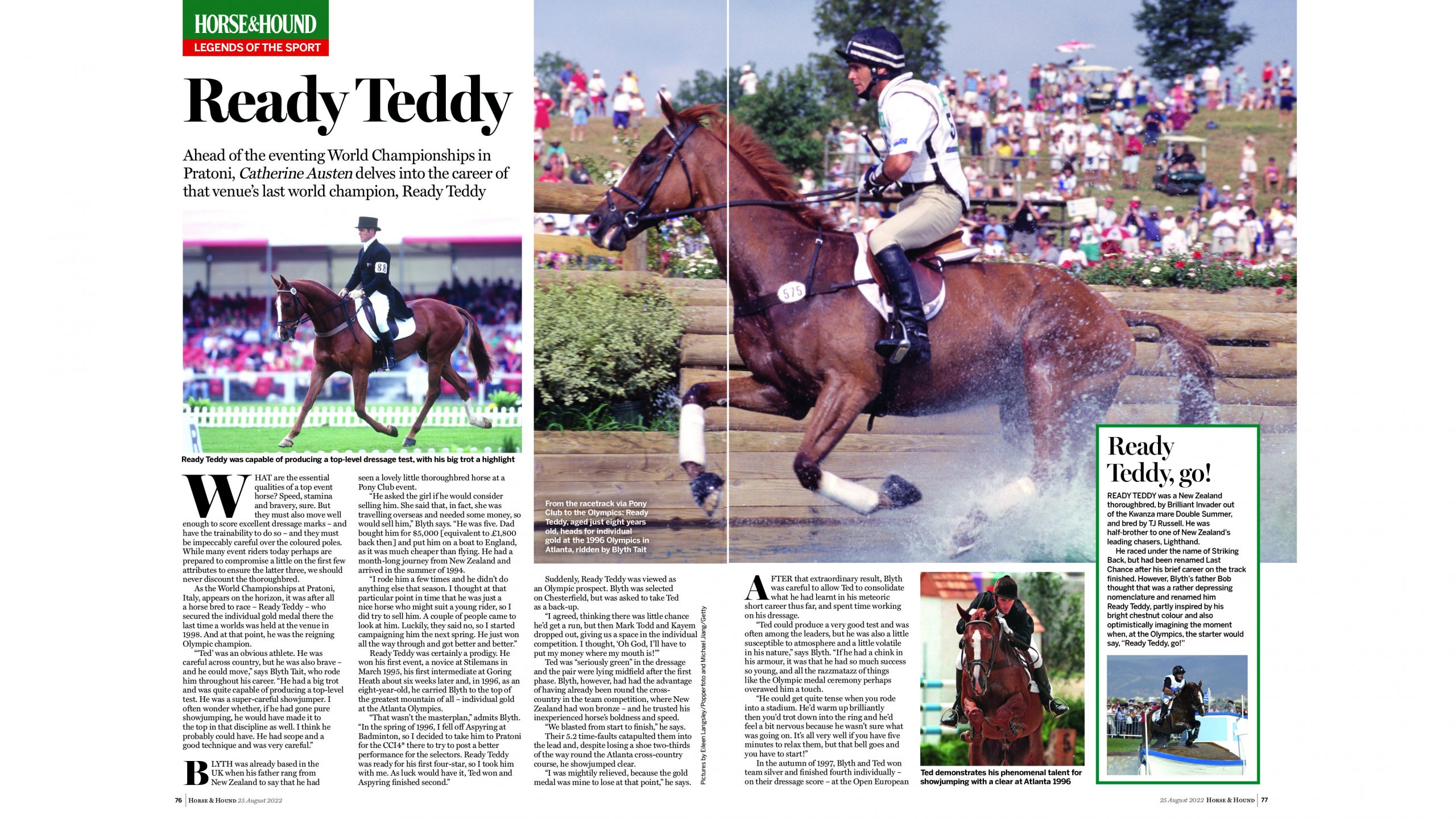 The cover of this week’s Horse & Hound magazine, on sale Thursday 25 August, you can read our Burghley preview, which includes a comprehensive course walk with Laura Collett, a look at horses that thrived on Burghley’s cross-country and more. Also in this week’s issue, read our full report from the London GCT, with interviews with both the five-star and two-star winners. You can also catch up on all the latest news in the equestrian world, read an interview with Kirsty Chabert, British World Championship eventing squad reserve, plus find out what a stable lad does in our All In A Day‘s Work feature. This week’s exclusive columns are from Piggy March, Erin Orford and Stuart Hollings. The Vet Clinic looks at how to know when a cut needs veterinary attention. You can also catch up on the reports from eventing, showing, showjumping, dressage and riding club action from around the UK, plus don’t miss our report from the Rydal Hound Show in our hunting pages. Finally, we take a trip down memory lane and take a look at the career of Ready Teddy, winner of the last World Championships at Pratoni del Vivaro, which is the venue for this year’s worlds showdown.