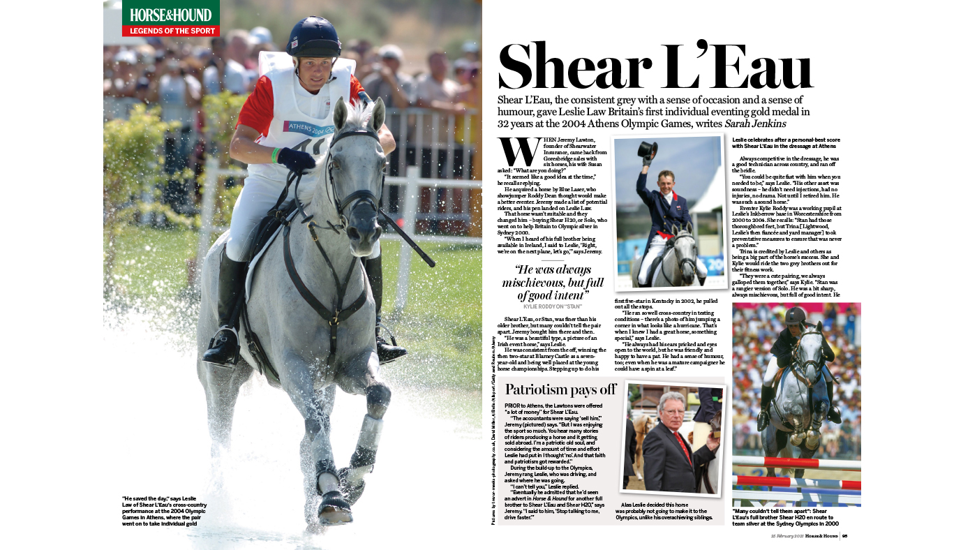 In this week’s Horse & Hound magazine, on sale Thursday, 25 February, we bring you the show guide special, which includes how to keep up with the action even if you can’t attend events, the best venues for training and more. There is also an interview with leading US event rider Liz Halliday-Sharp, plus a look around Olympian Spencer Wilton’s stunning new base, and this week’s legends of the sport nostalgic feature looks back at the career of Leslie Law’s ride Shear L’Eau, who won individual gold at the 2004 Athens Olympics. We also have reports from racing, international showjumping and much more.