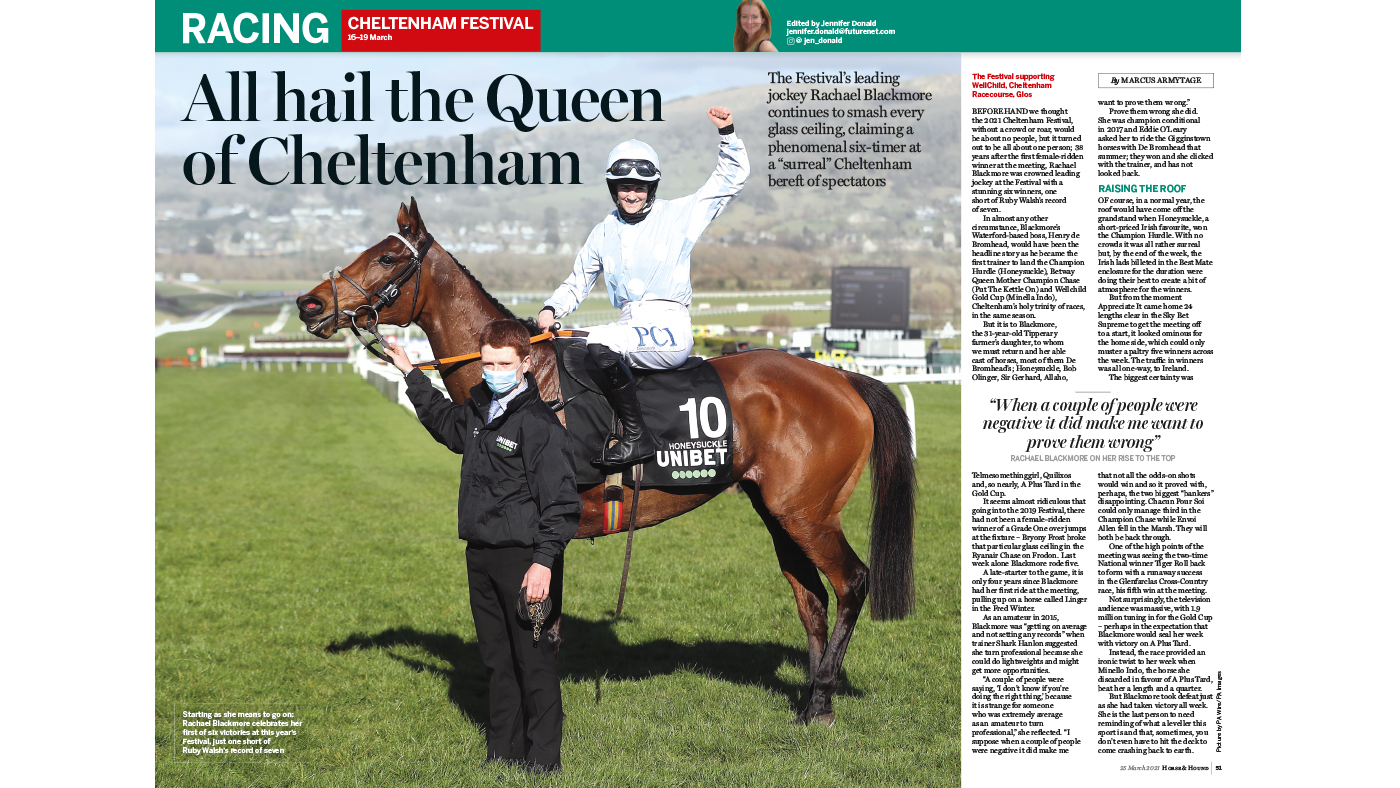 - “All hail the Queen of Cheltenham”: Rachael Blackmore becomes the first female to take the leading jockey title at the Festival