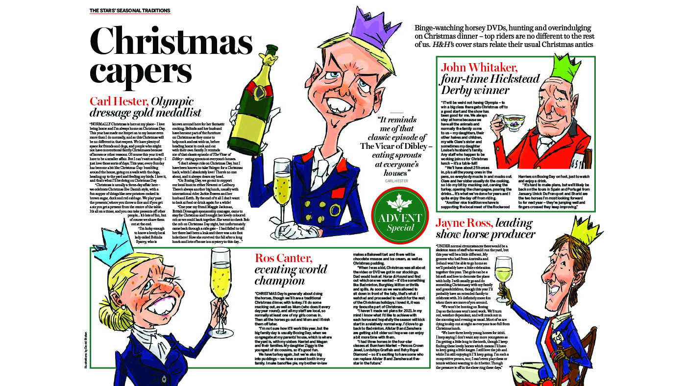 In this week’s Horse & Hound magazine, on sale Thursday, 26 November, don’t miss our advent and Christmas gift guide special, with a look into how top riders celebrate, a comprehensive range of present ideas and more. In this week’s “Vet clinic”, we explore the large intestine and problems that can arise in the hindgut, plus check out our feature on the most capped British event horse in history, Over To You. We also have an interview with bright young eventing star, Yasmin Ingham and read some great hunting content, including a feature on “Carthorse cob” Hobnob, and enjoy our nostalgic feature “Legends of the chase”, in which we find out about Will Dale, the Duke of Beaufort’s huntsman. Plus, read reports from showjumping in Vilamoura and Scotland, Grade One racing action from Haydock Park and much more.