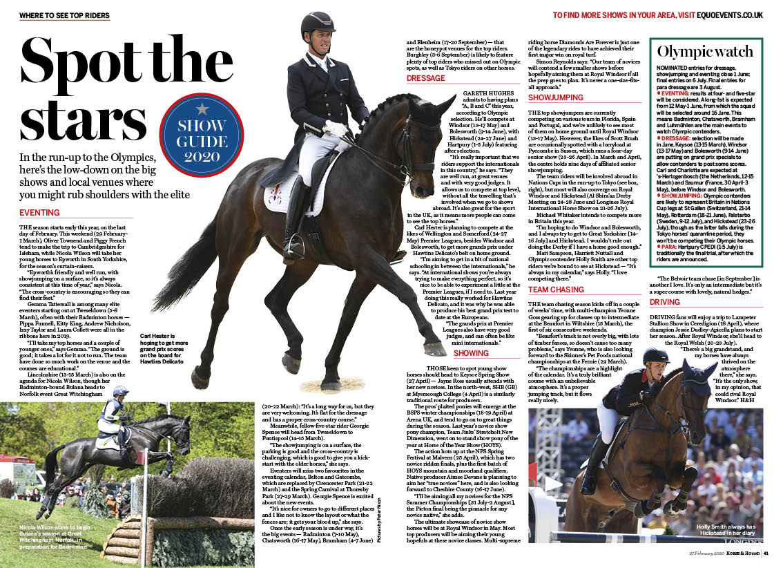 In this week’s Horse & Hound magazine, on sale Thursday, 27 February, don’t miss our ultimate show guide issue for the 2020 competition season, including the unmissable events, where to spot elite riders, plus a William Fox-Pitt masterclass and much more. We talk to champion racehorse trainer Paul Nicholls in this week’s H&H interview and leading showing figure Stuart Hollings reveals his life lessons. We also go behind the scenes at the Duke Of Beaufort’s immaculate kennels. We have reports from across the disciplines, including dressage, showjumping, racing and winter showing highlights.