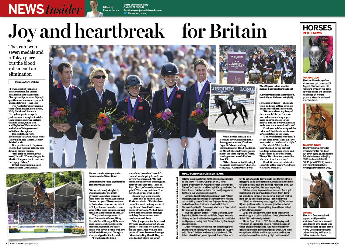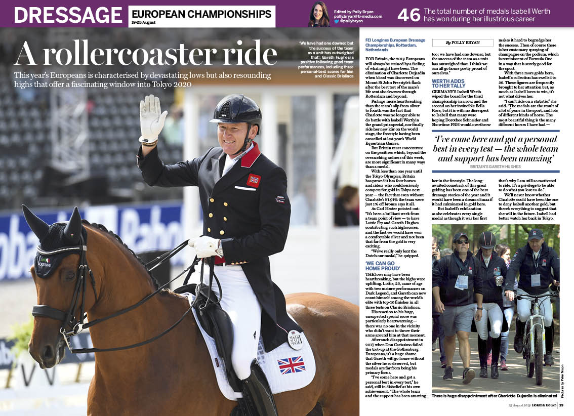 In this week’s Horse & Hound magazine, out on Thursday 29 August 2019, don’t miss our full report from the dressage, showjumping and para dressage European Championships, including in-depth analysis, expert comment, pictures and more. Also, check out our preview ahead of the Burghley Horse Trials — Mark Todd walks us around the 2019 cross-country track, plus take a look at the dressage test and don’t forget your copy of the course map. In this week’s ‘Vet clinic’ we ask whether horse owners should still buy despite bad X-rays, and we talk to eventer Ben Hobday as he gears up for Burghley. We also have reports from across the disciplines including eventing from Blair, showjumping from Scope Festival and much more.