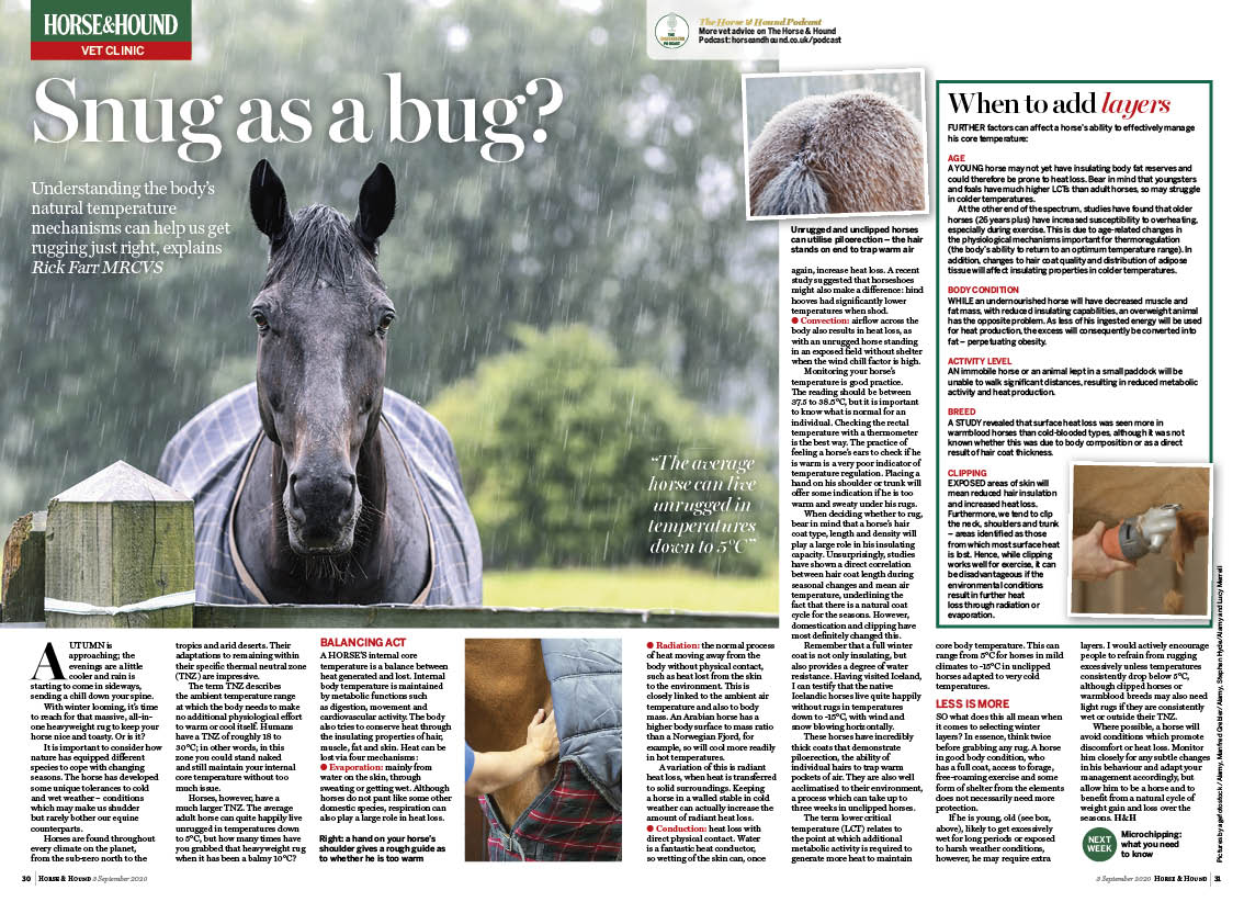 In this week’s Horse & Hound magazine, on sale Thursday, 3 September, don’t miss our “Lost Burghley” special including a look back at the Burghley horse heroes, plus a fun simulation revealing who may have won this year and more. We talk to dressage rider Richard Davison in H&H interview, and in this week’s “Vet clinic” we look at how understanding the body’s natural temperature mechanisms can help us get rugging horses right. We also pay tribute to the best-ever eventing stallion, Chilli Morning, and check out what you need to consider if you’re thinking about building an indoor school. Read reports from across the disciplines and don’t miss our hunting content on the deep significance of the hunting horn, and much more.