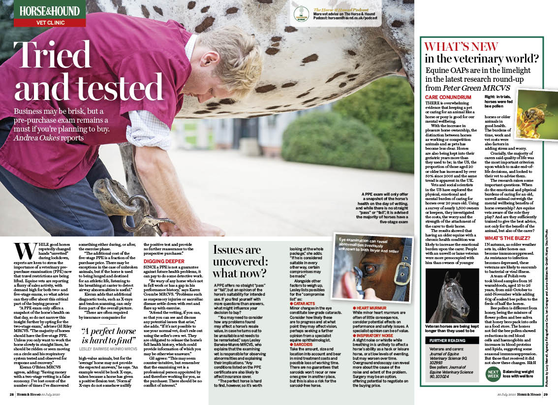 - Tried and tested: The importance of a pre-purchase examination on a new horse, plus why caring for an older equine can be a mental and physical burden