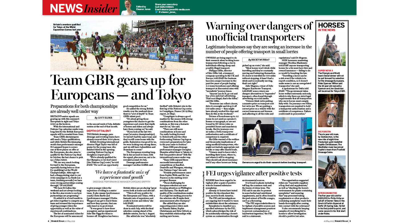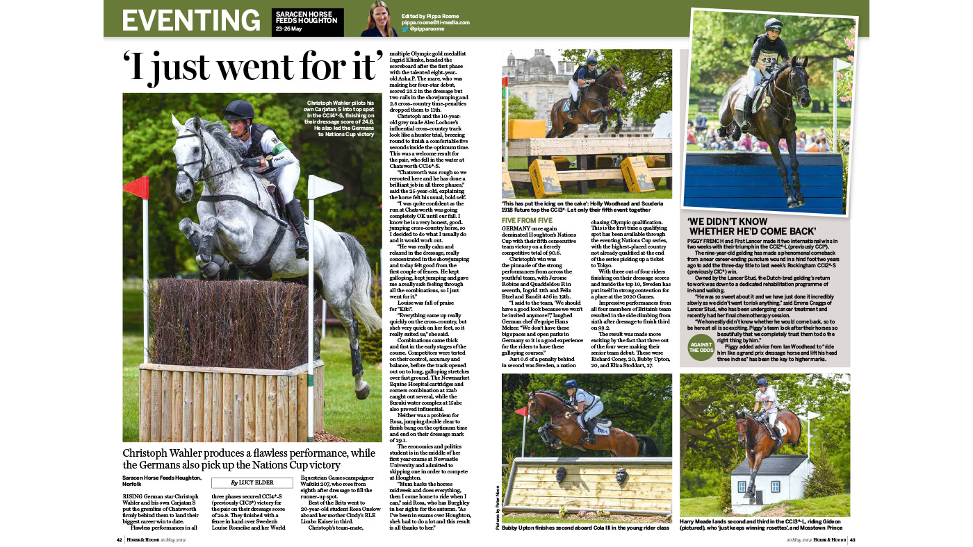 In this week’s Horse & Hound magazine, out on Thursday 30 May 2019, don’t miss our exclusive interview with 2019 Badminton winner, Piggy French. Plus we also have our summer horse care special, which includes how to cool horses safely after exercise and more. In this week’s ‘vet clinic’ we look at all the latest research and investigate a camera that can go all the way through your horse. Check out our reports from across the disciplines including eventing from Houghton and all over the country, plus showjumping, showing, dressage point-to-point action and much more.