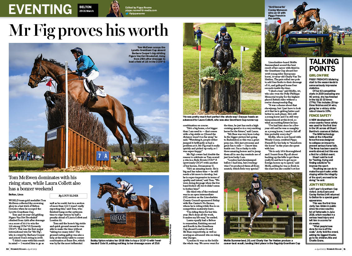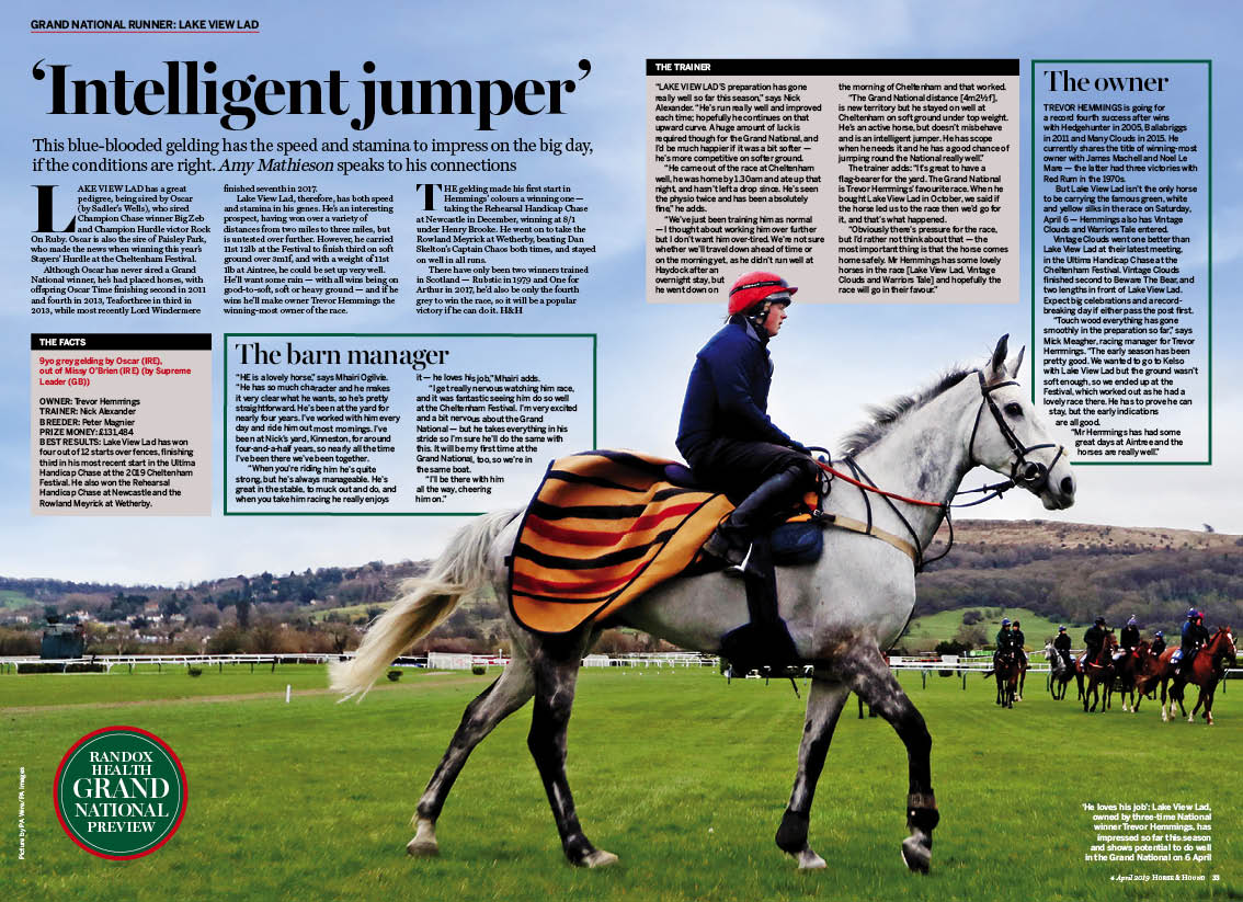 In this week’s Horse & Hound magazine, out on Thursday 1 April 2019, don’t miss our ‘Grand National preview’ including our ultimate sweepstake form guide, meet National runner Lake View Lad and more. Plus, we go behind the scenes at the Goresbridge Go For Gold Sale, and we talk to top Irish jockey Rachael Blackmore. In this week’s ‘Vet clinic’ we look at potential turnout problems, and we speak to Heythrop hunt secretary Guy Avis on retiring after 20 years in office. We have reports from across the disciplines, including eventing action from Belton, racing from Ascot and much more.