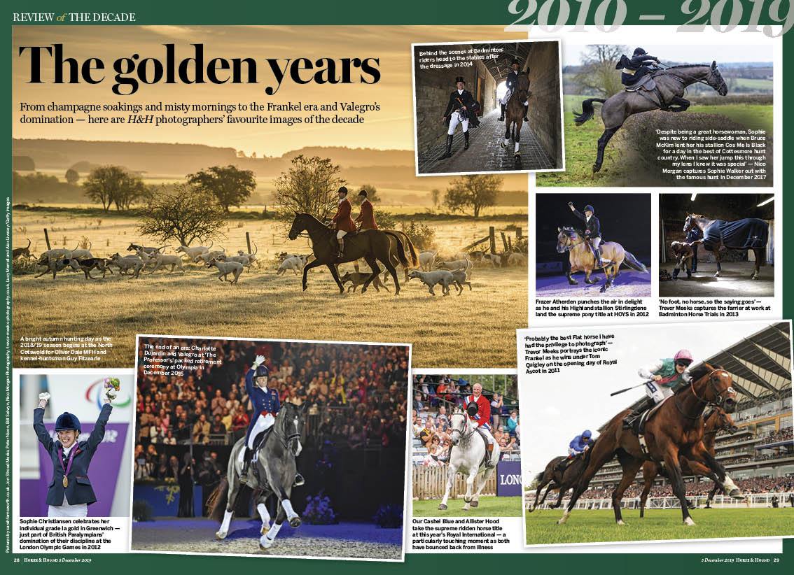 In this week’s Horse & Hound magazine, out on Thursday 5 December 2019, don’t miss our special issue, as we look back over the past 10 years in ‘Review of the decade’ — including H&H photographers choose their favourite pictures, the biggest headlines, the changing trends and much more. Read our interview with the Princess Royal as she talks about helping to form the RDA 50 years ago, plus check out this week’s ‘Vet clinic’ as we explore jaw fractures in horses. Don’t miss our hunting features on why using the best bitches for breeding is important and more. We also have reports from across the disciplines, including racing and point-to-point action, plus showjumping from Aintree.