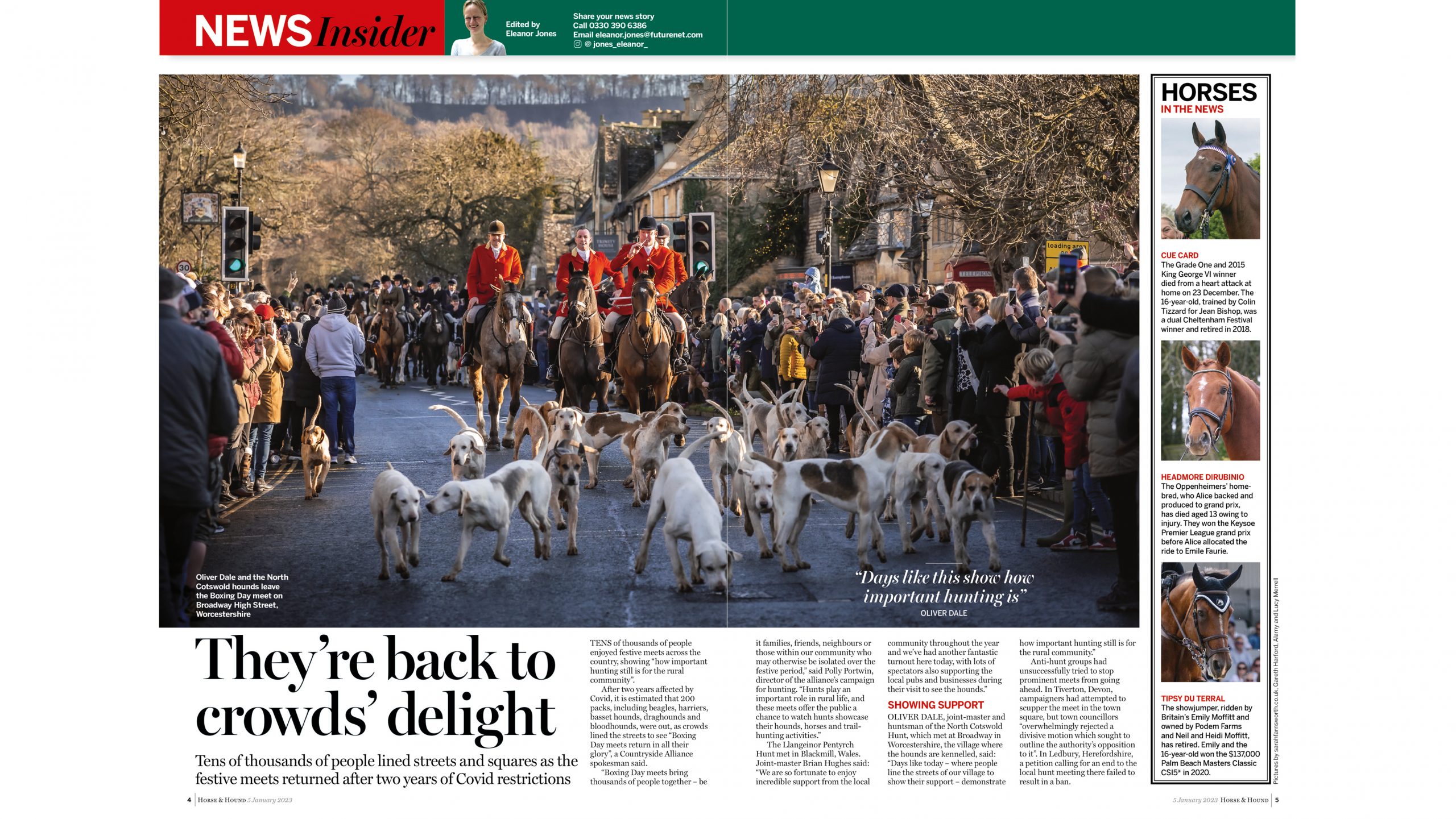 This week’s Horse & Hound, on sale from 5 January, features our New Year special, which includes 14 to up-and-coming riders to watch in 2023 from across the disciplines, top riders reveal their ambitions for the next 12 months, and plenty more besides. This week’s issue is also the travel special, where we pay visits to horse riding holidays in France, Turkey and Wales. Also in this week’s issue, you can read an interview with event rider Holly Woodhead. In the Vet Clinic pages, we take a look at why stallions and mares must undergo pre-breeding disease screening. We have an exclusive column from Adam Cromarty for showjumping aficionados, while this week’s reports pages cover dressage, showjumping, racing and point-to-point action from across the UK for sport fans to enjoy. In this week’s hunting pages, we feature photos from festive hunting from around the country and Andrew Sallis joins VWH huntsman Philip Hague for a day.