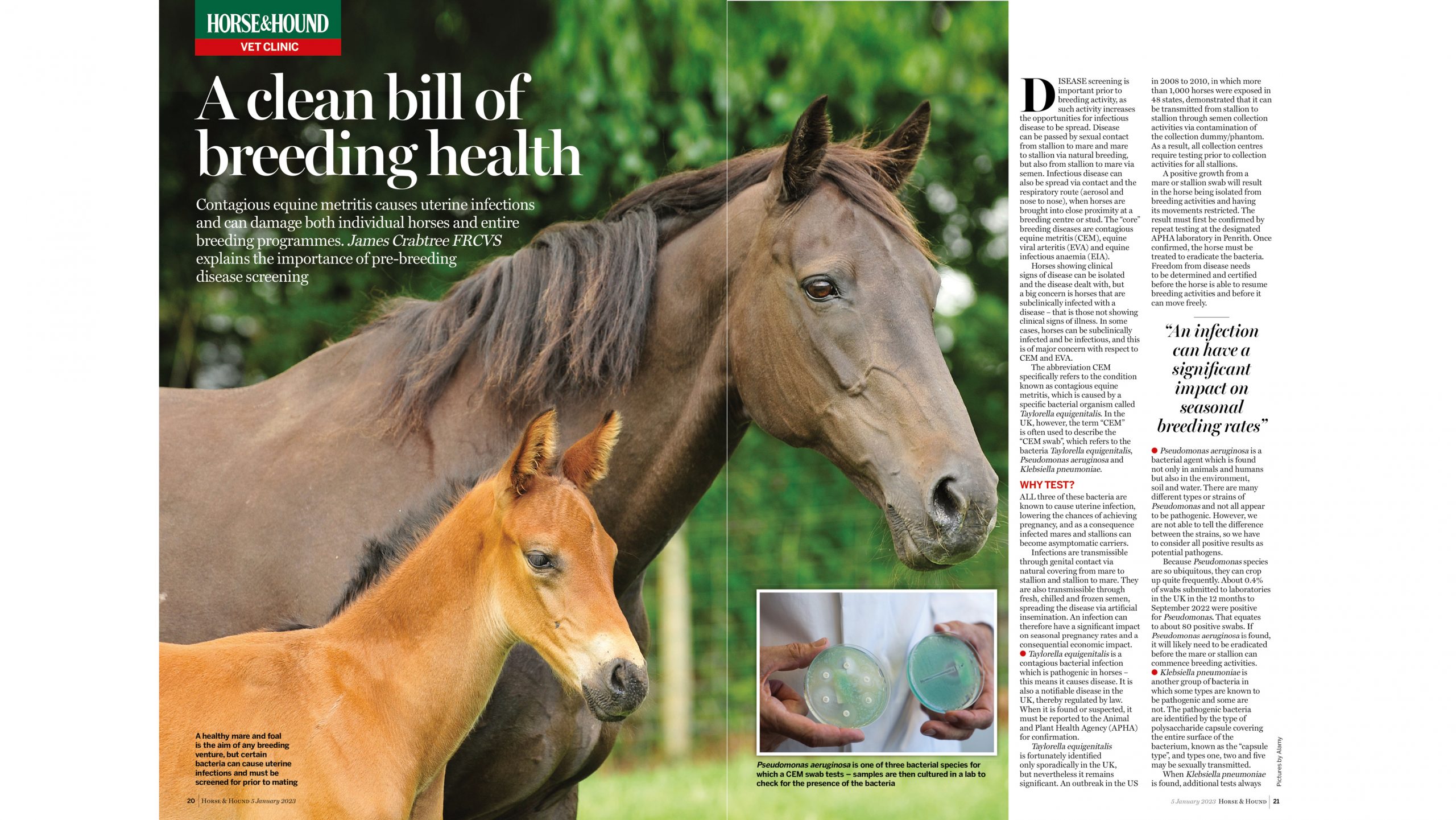 - A clean bill of breeding health: Why stallions and mares must undergo pre-breeding disease screening