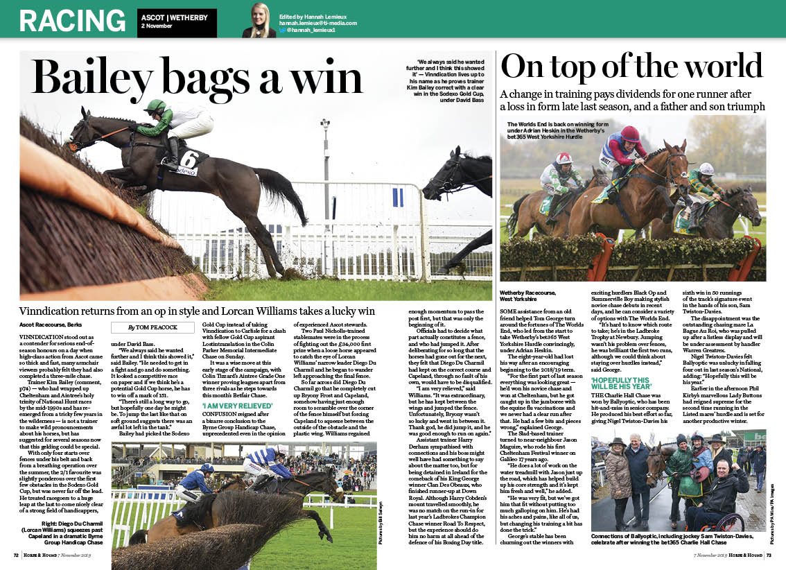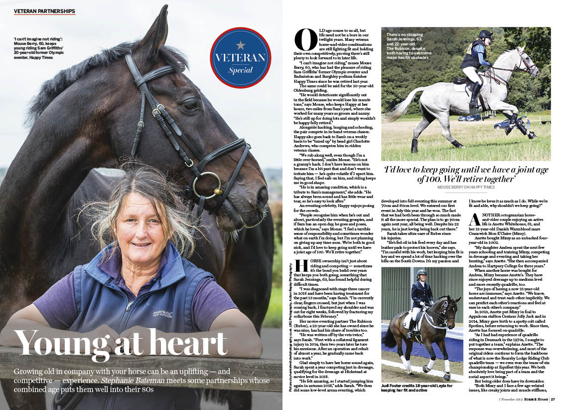• In this week’s Horse & Hound magazine, out on Thursday 7 November 2019, don’t miss our ‘Veteran special’ including why growing old with your horse can be uplifting and much more. In this week’s ‘Vet clinic’ we look at pinpointing neck pain in horses, and don’t miss our picture gallery from opening meets across the country. We also talk to talented young event rider Cathal Daniels, plus read our hunting features in which we explore the deep-rooted links between the sport and racing and more.