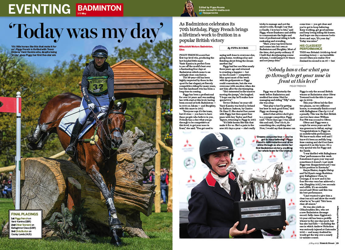 In this week’s Horse & Hound magazine, out on Thursday 9 May 2019, don’t miss our full report from Badminton Horse Trials including in-depth analysis, expert comments, pictures and much more. Plus, read this week’s ‘Vet clinic’ on investigating a horse’s health before buying, and we also talk to British polo player Charlie Hanbury. Read reports from across the disciplines including showing action, racing from Cheltenham and Newmarket, point-to-point and much more.