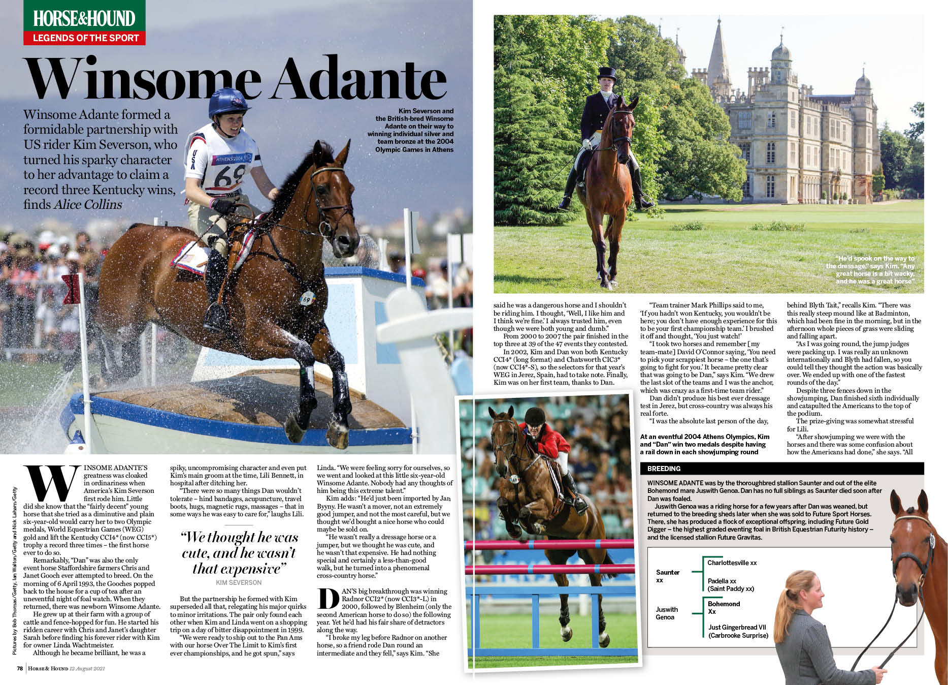 - Legends of the sport: Winsome Adante, who won three Kentucky Three-Day Events and Olympic silver and bronze medals with the USA’s Kim Severson