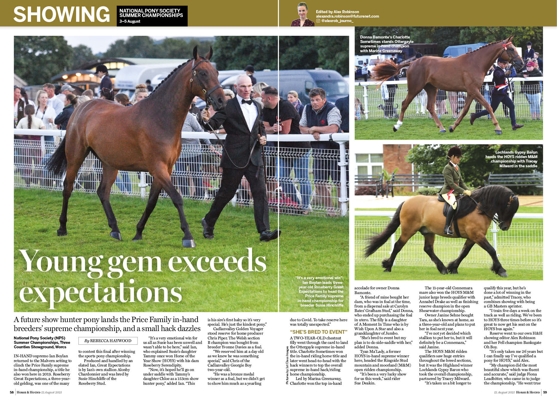 - Showing: National Pony Society Summer Championships, UK Nationals, Norfolk Equestrian Show and Arab Horse Society National Championships