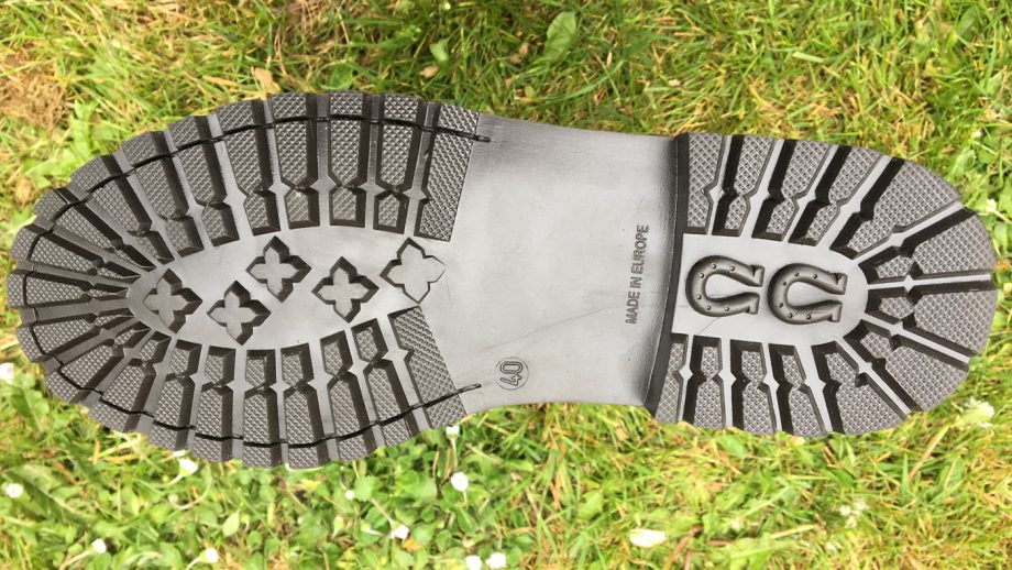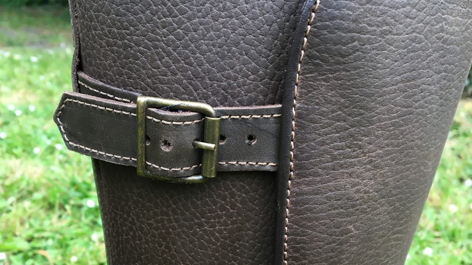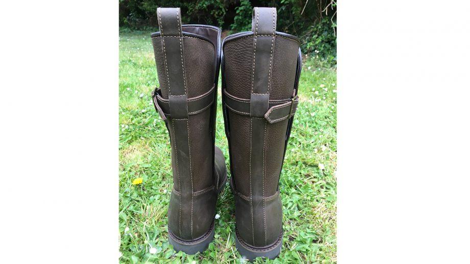 And there’s a brass buckle at the back so that you can adjust the fit of the boots around your calf – great for putting them on and off quickly and making for a slightly snugger fit around the leg, from narrow to wide. And the leather boot pull on the top of the boot at the back is reinforced with stitching – it’s useful for pulling the boots on, but I don’t think you’ll need that; I didn’t as the boots are very easy to get on and off.