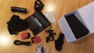 The box includes various head mounts and straps, a wrist strap that saves important video clips at the touch of a button, and a protective bag and lens wipe