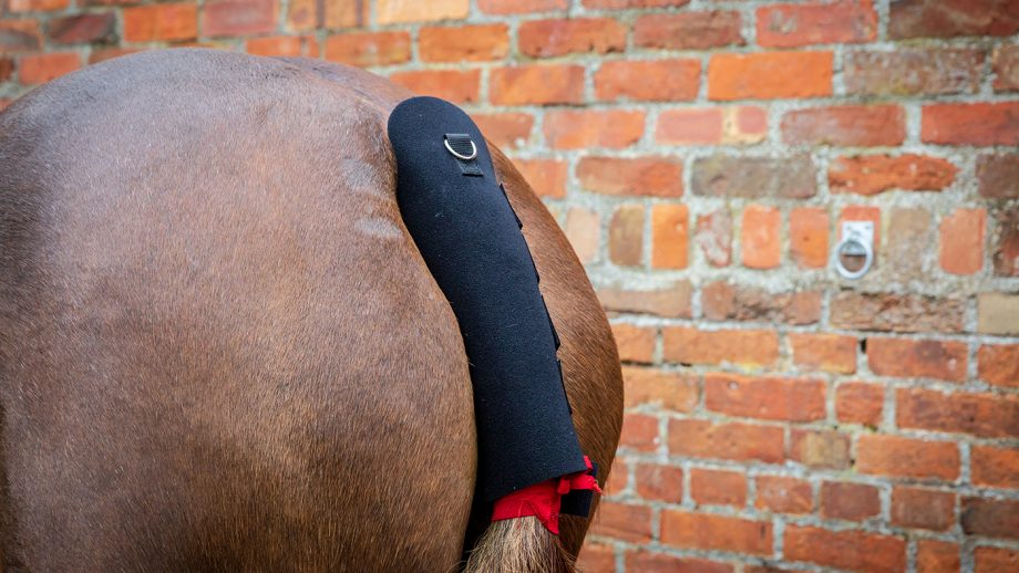 The Eskadron tail guard is made from 5.5mm-thick neoprene with a fleece lining to protect the horse during transport of to keep the tail bound. There is an unlined neoprene section at the bottom to ensure the tail guard doesn’t slip. Available in one size, in black.