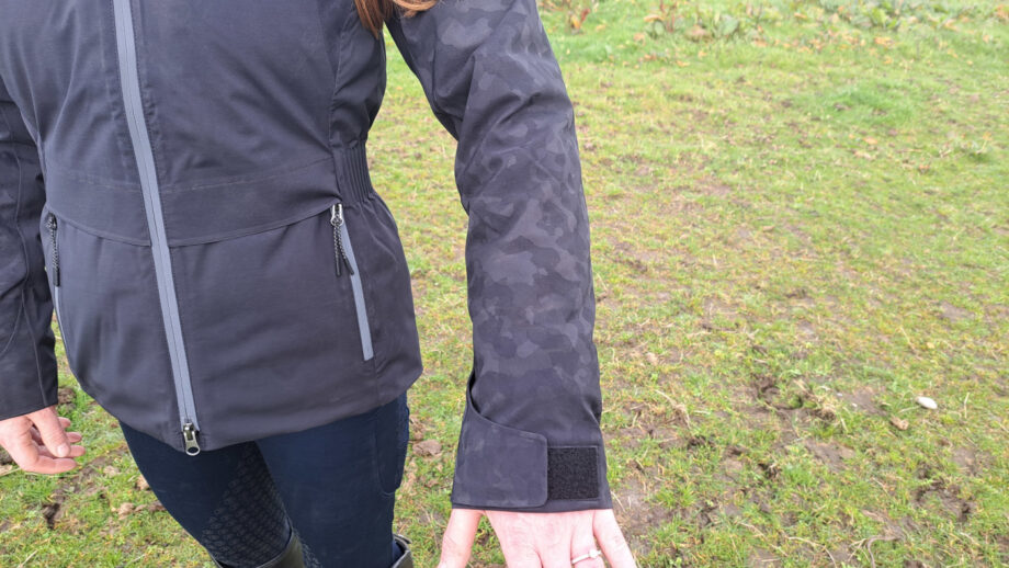The coat is black with a cool camo pattern down the sleeves. When it comes to my equestrian wardrobe, being entirely honest ‘fashion’ isn’t usually very high on my list, but I love the way this coat looks – and it even got the approval from my non-horsey partner, who rarely has anything to say about my horse gear!