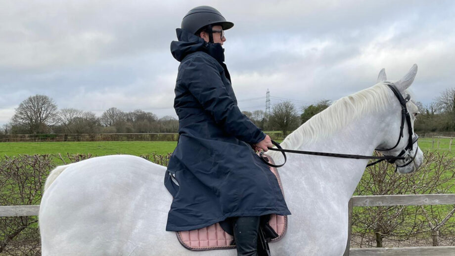 The leg straps meant the coat didn’t flap around in the wind. I have worn it when hacking, doing fast work and for flatwork lessons during the cold snap but found after I had warmed up I was a little too hot.
