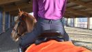 My first impression was that these Toggi Winter Flexi breeches look smart and have some useful features such as the belt loops and zip pocket on the side. I like the purple contrast piping across the back and on the stitching of the belt loops. In some lights the breeches look deep navy rather than black, but they are flattering either way, although as you can see in the photos, there is some VPL shown when not in the saddle.