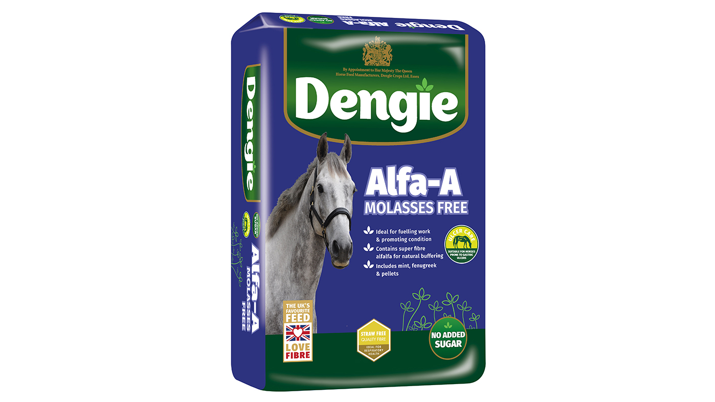 Dengie Alfa-A Molasses Free, combining chopped and pelleted alfalfa with a rapeseed oil coating, mint and fenugreek, was used in behavioural research that found horses fed a fibre- and oil-based ration were more calm and consistent in their behaviour compared to those fed a cereal-based concentrate of the same energy level.
