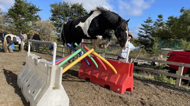‘He loves jumping!’ Alun the cob takes flight during groundwork clinic