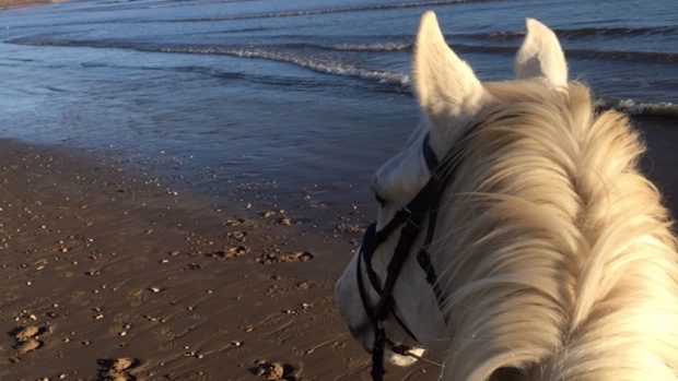 ‘I asked the owner if I should get off and he said ‘No, because the dog might bite you’.’