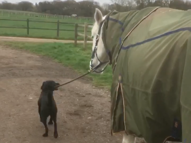 You may have seen a a Facebook post recently showing Charlotte Dujardin’s rescue dog Jingles leading Valegro into his stable. This got us thinking about whether there were any other helpful canines out there, and the answer was a definite yes...