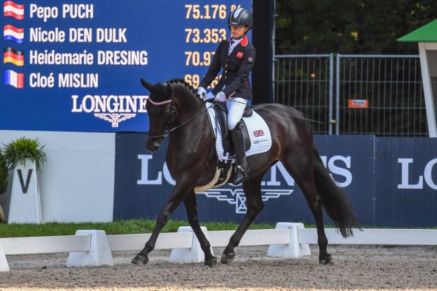 Georgia’s major break-through moment on the international stage came at the 2019 European Championships in Rotterdam aboard the mare Midnight, who she co-owns with her parents. Rotterdam was Georgia’s first senior championship and she won freestyle gold as well as individual silver, along with helping the British side to team silver.