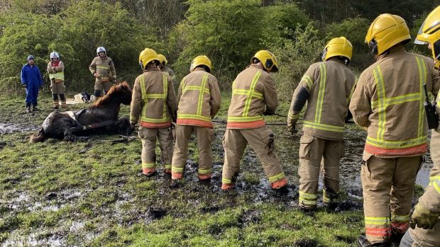 Fire crews sent to save 17hh veteran horse stuck in mud four feet deep