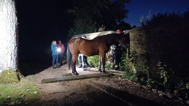 Escaped horse found stuck in cattle grid after dragging it along the road