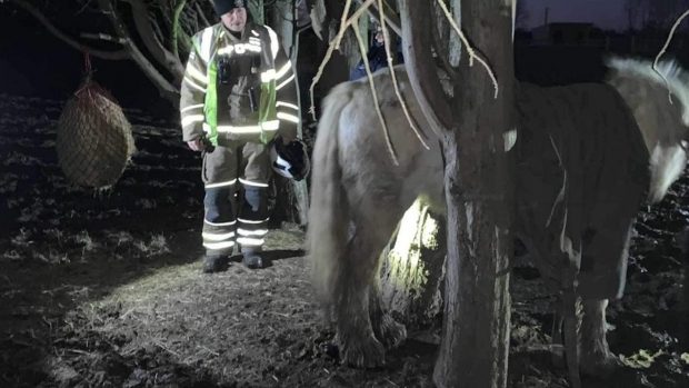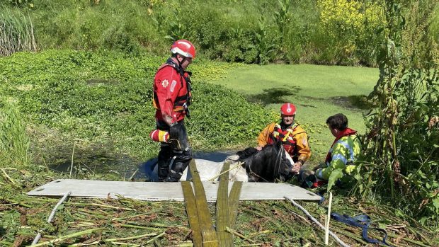 Quick-thinking firefighters use tyres to save mare from drowning in flooded valley