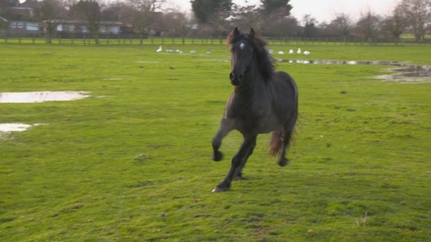 Horse beaten and kicked after road collapse is ‘part of the family’ in new loving home
