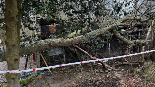 ‘A bit of a miracle’: stables ‘obliterated’ by fallen tree – but horses walk out unharmed