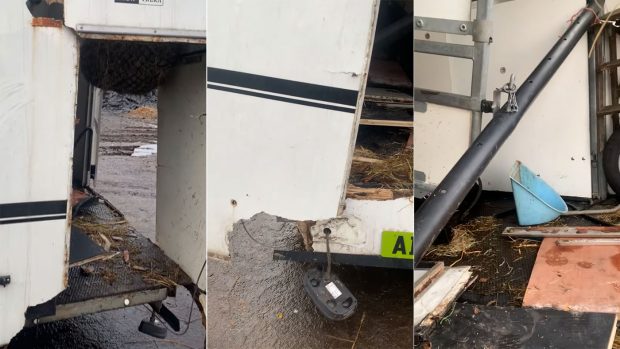 Thieves strip out partitions, breach bars and wheel – but leave horse trailer behind