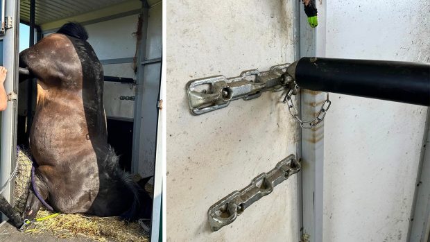 Owner’s safety-check warning after horse found upside-down in trailer